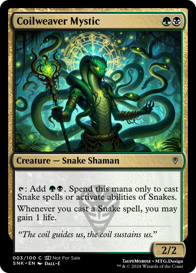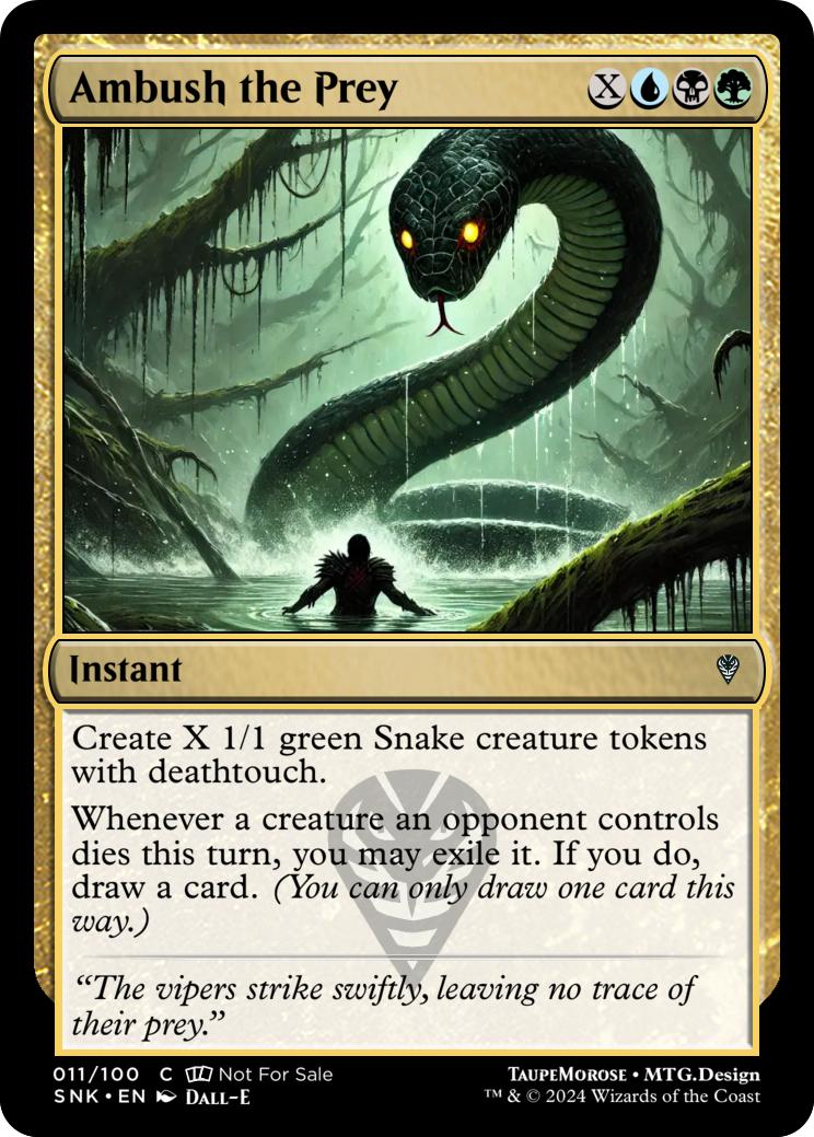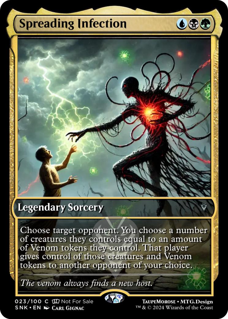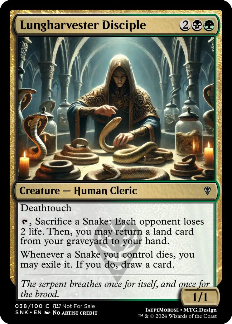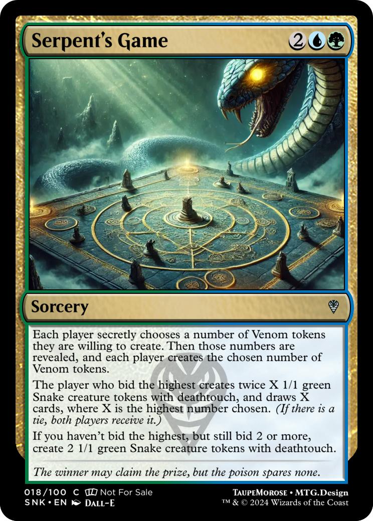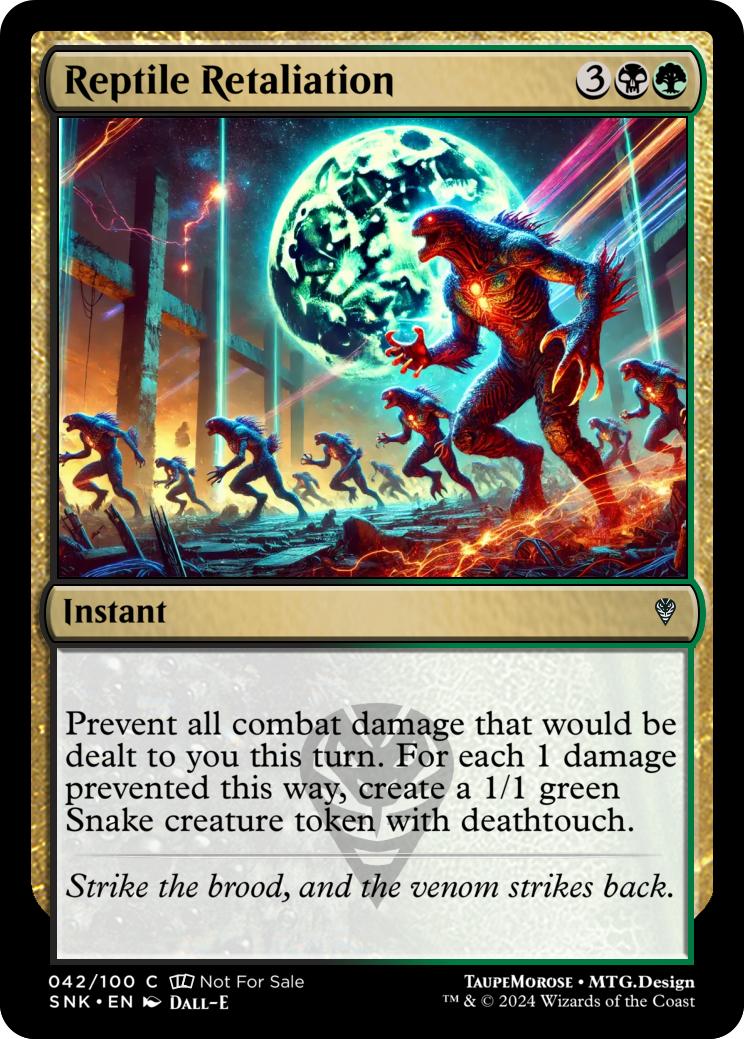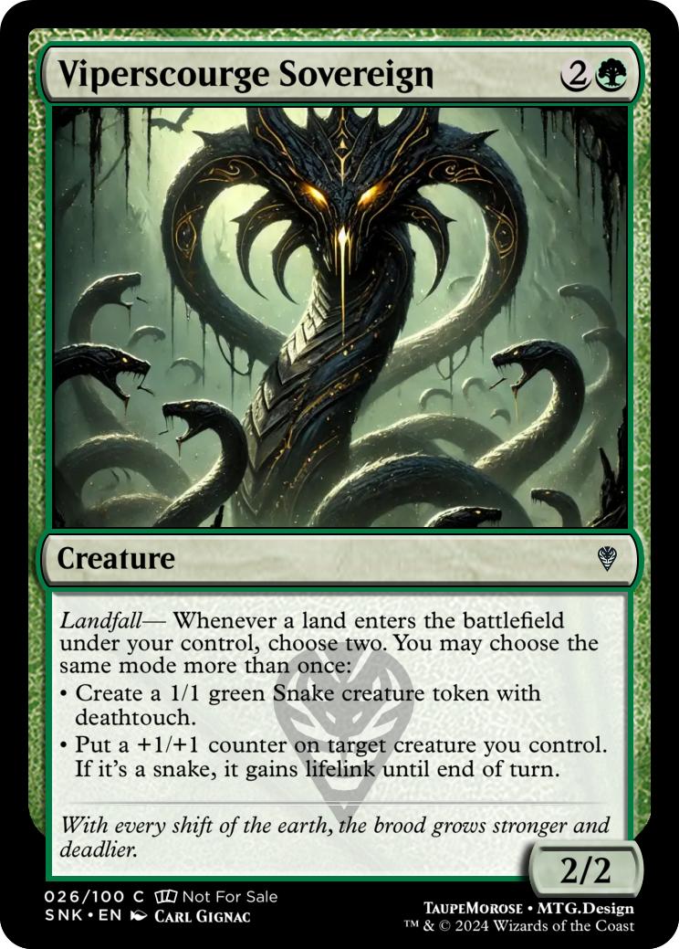 Whenever a Snake you control deals combat damage to a player, that player creates a Venom token. (It's an enchantment with "At the beginning of your upkeep, this enchantment deals 1 damage to you. {1}, {T}, Pay 1 life: Destroy this enchantment.")
