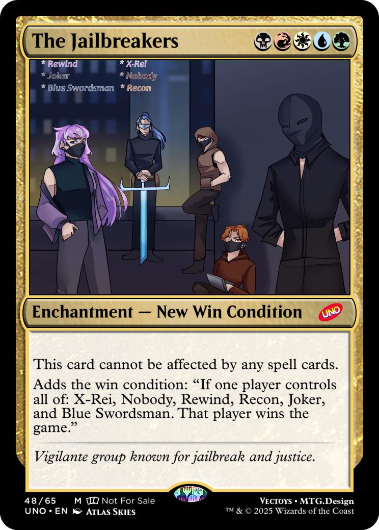 Adds the win condition: "If one player controls all of: X-Rei, Nobody, Rewind, Recon, Joker, and Blue Swordsman. That player wins the game."