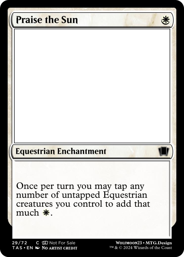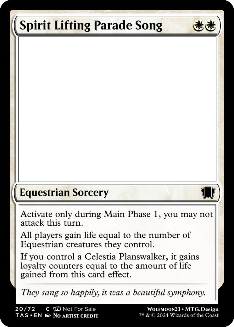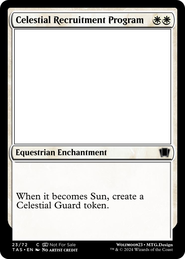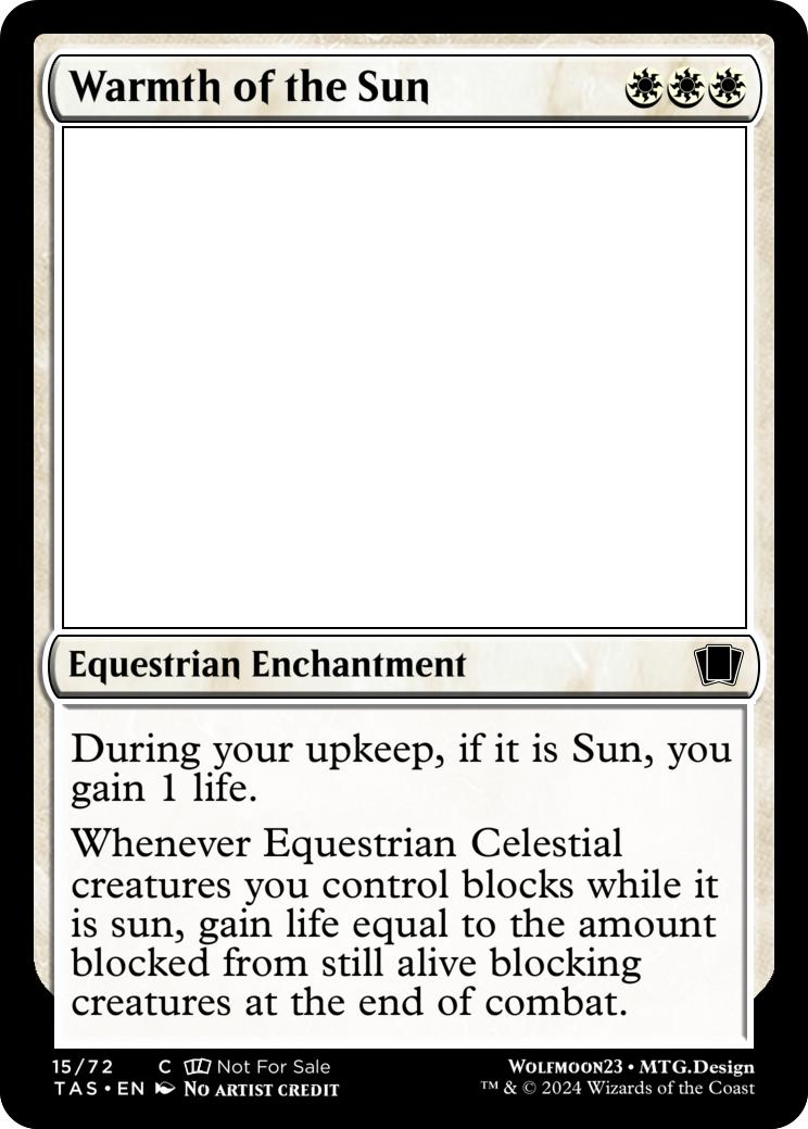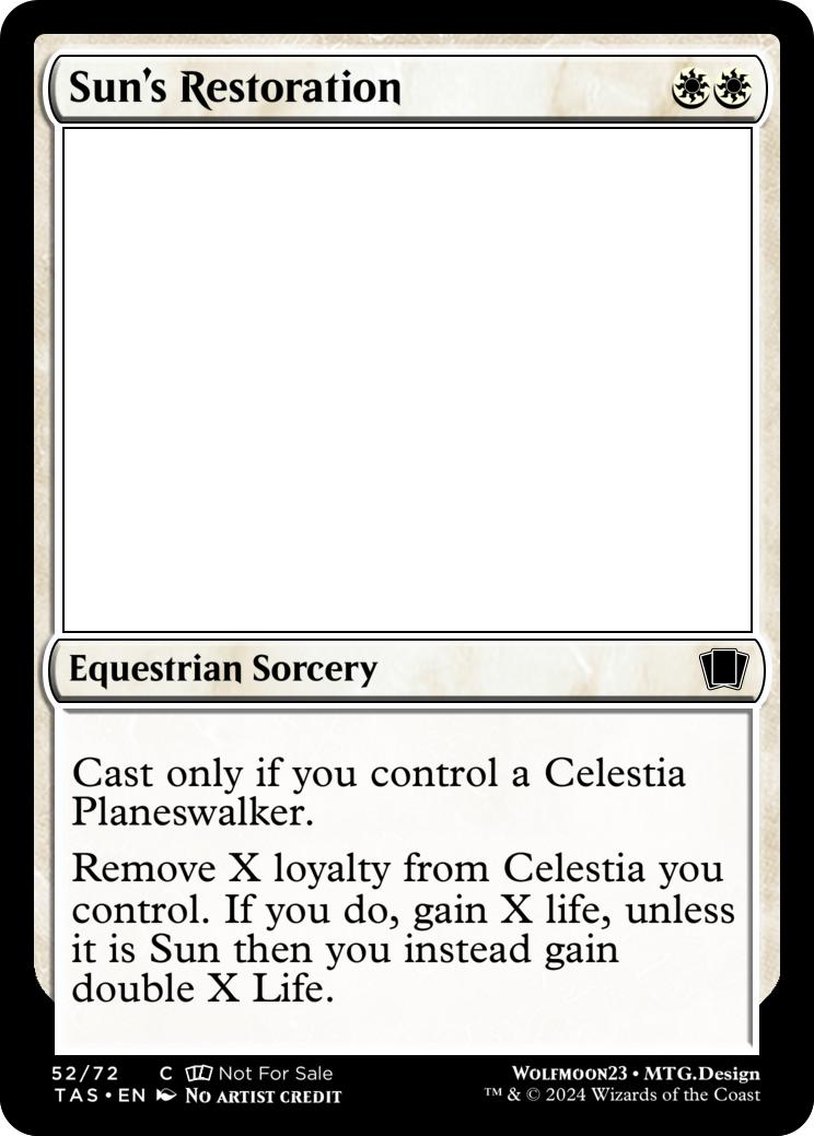 0: This card gains loyalty equal to X, and you gain life equal to X. Where X is the number of Equestrian Celestial creatures you control. Activate only during Sun.