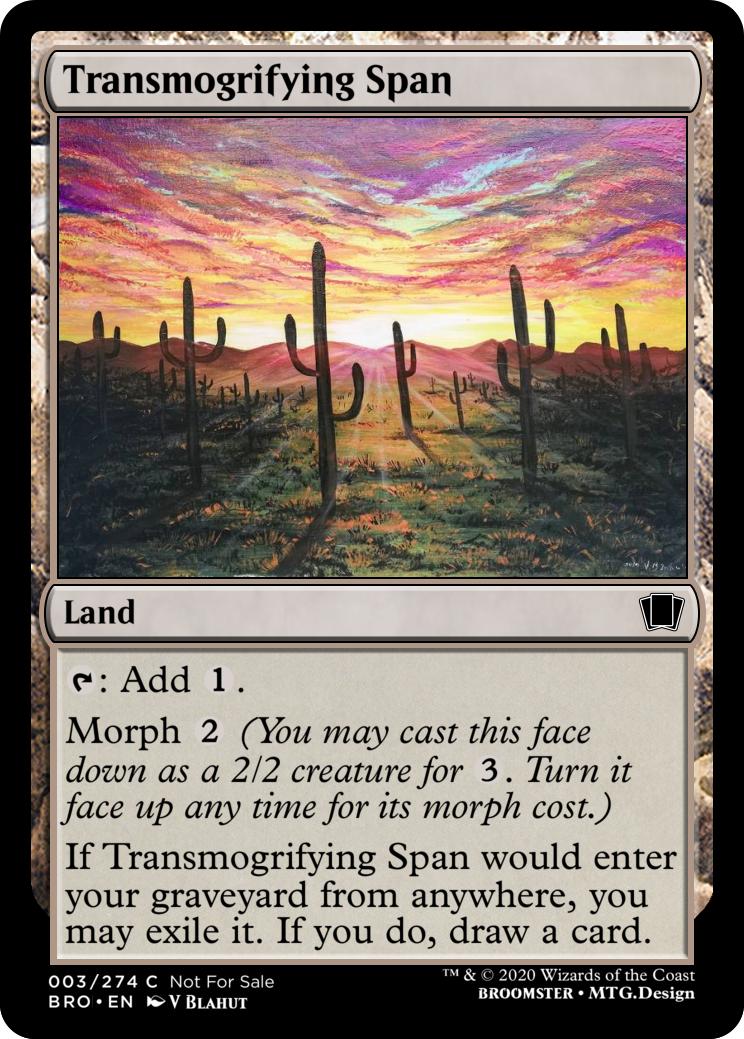 If Transmogrifying Span would enter your graveyard from anywhere, you may exile it. If you do, draw a card.