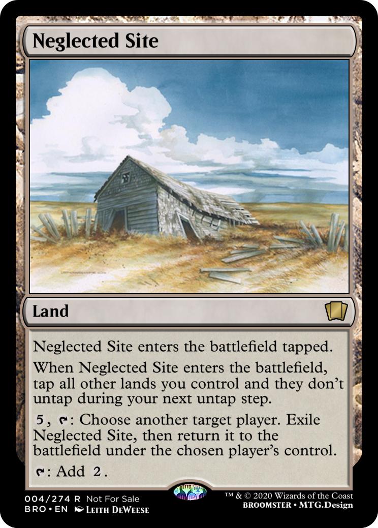{5}, {T}: Choose another target player. Exile Neglected Site, then return it to the battlefield under the chosen player's control.