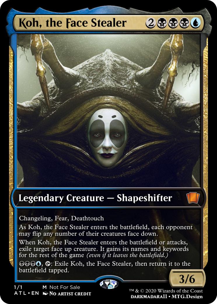 As Koh, the Face Stealer enters the battlefield, each opponent may flip any number of their creatures face down.