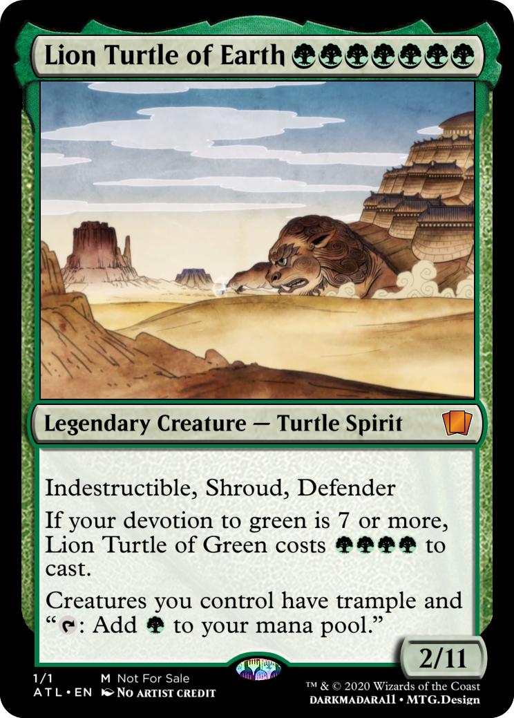 If your devotion to green is 7 or more, Lion Turtle of Green costs {G}{G}{G}{G} to cast.