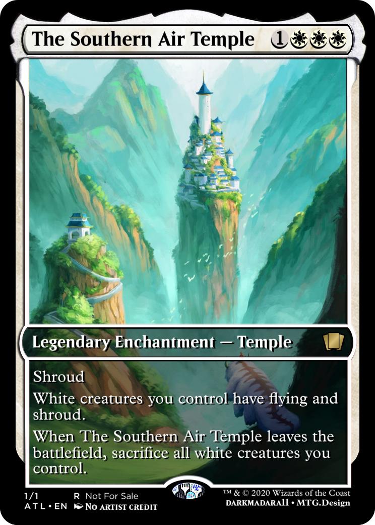 When The Southern Air Temple leaves the battlefield, sacrifice all white creatures you control.