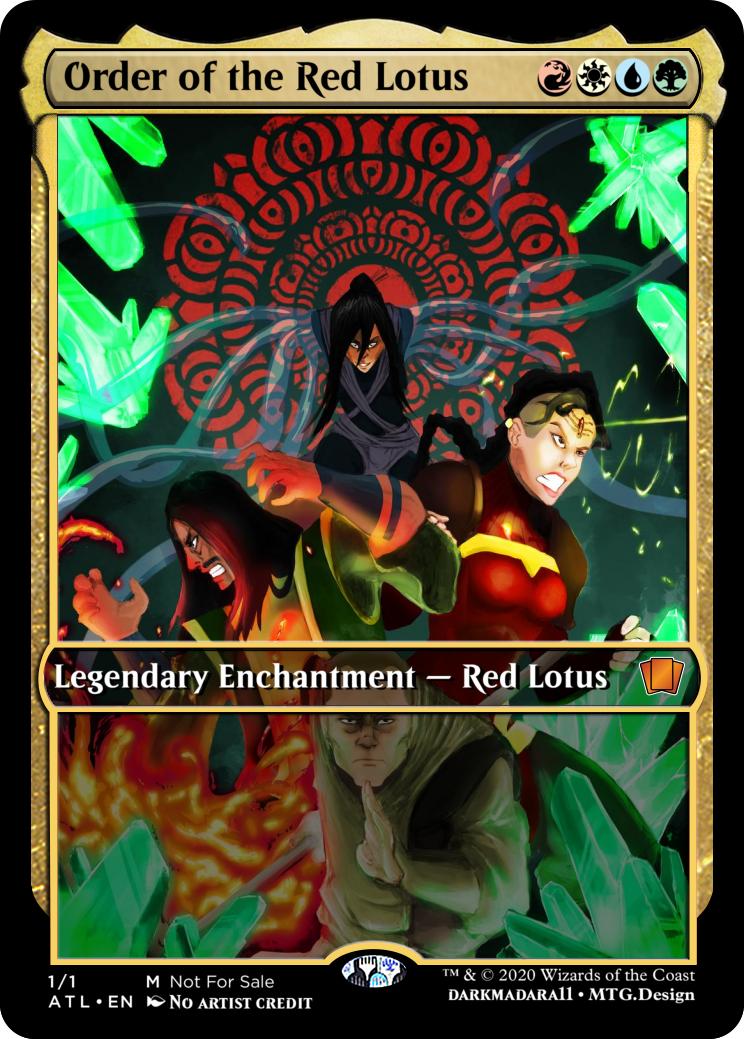 Search your library, graveyard, and/or exile for an Avatar creature card and put it into play. Then, shuffle your deck. If you do, you and creatures you control gain protection from red until the end of the turn.