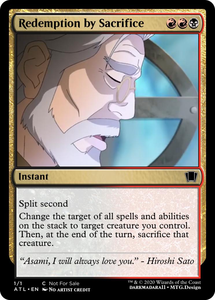 Change the target of all spells and abilities on the stack to target creature you control. Then, at the end of the turn, sacrifice that creature.