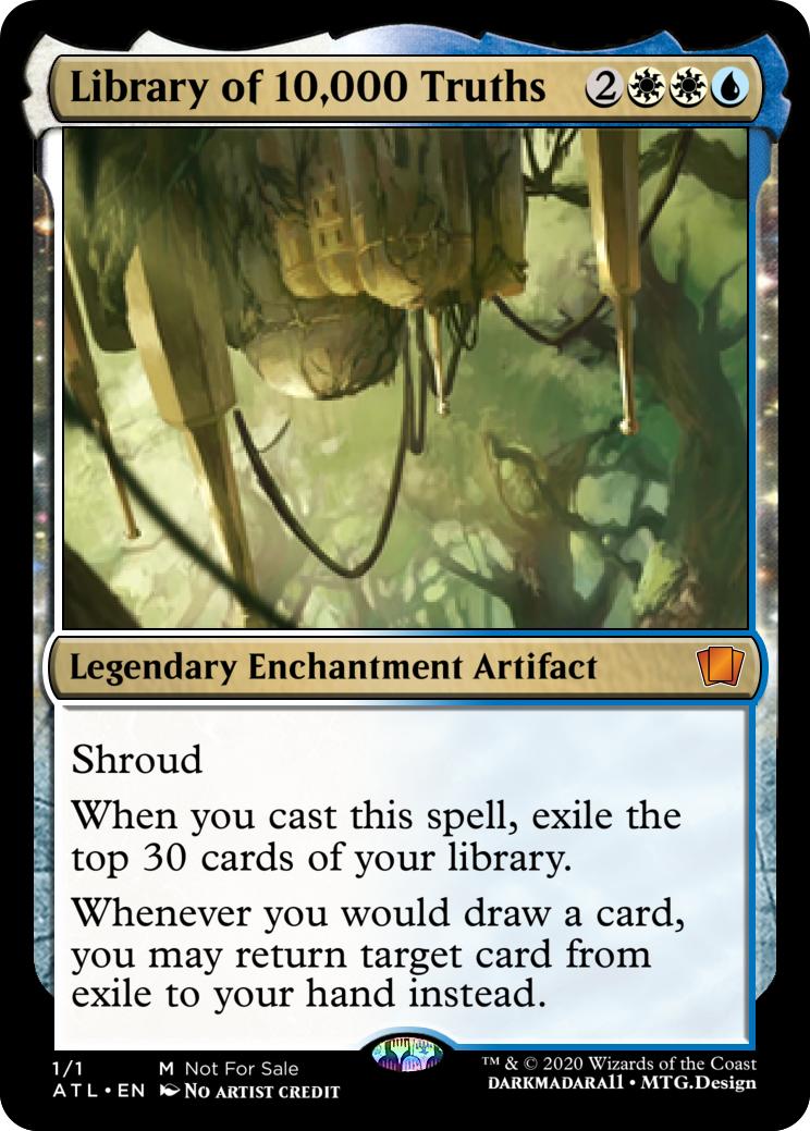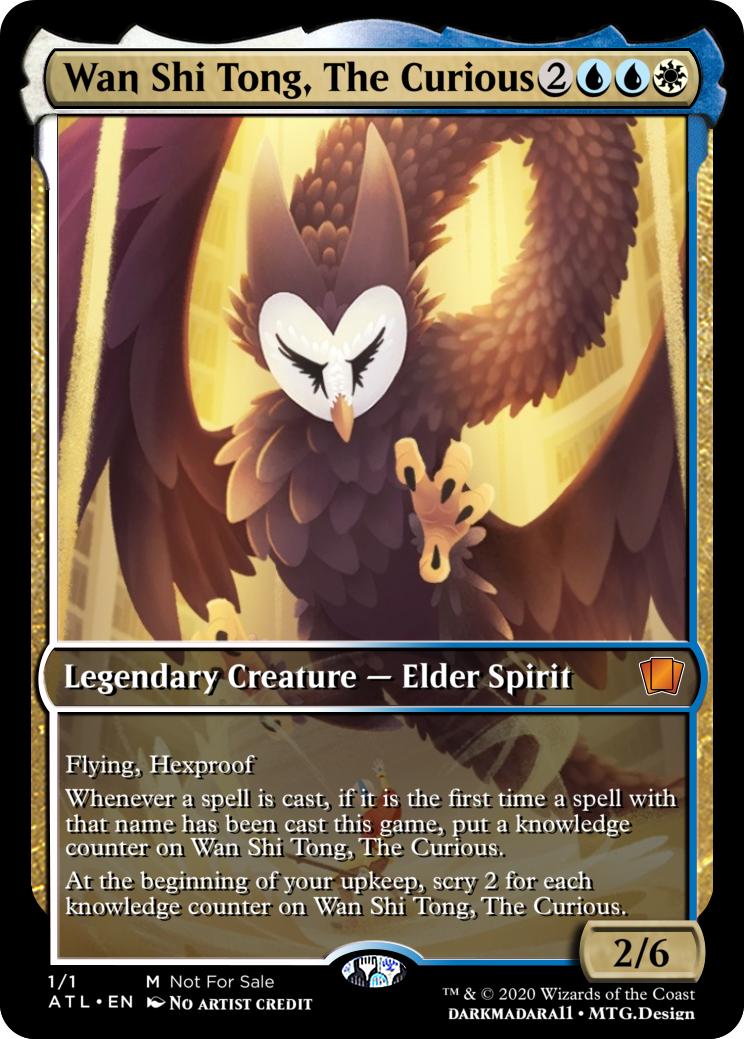 At the beginning of your upkeep, scry 2 for each knowledge counter on Wan Shi Tong, The Curious.