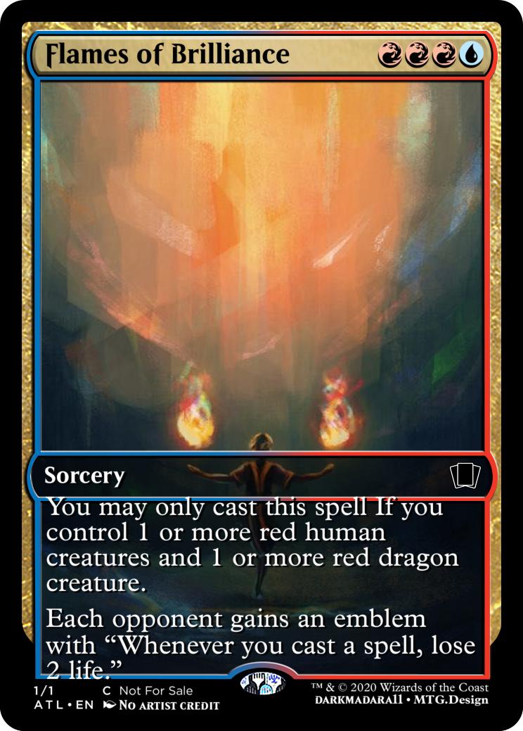 You may only cast this spell If you control 1 or more red human creatures and 1 or more red dragon creature.
