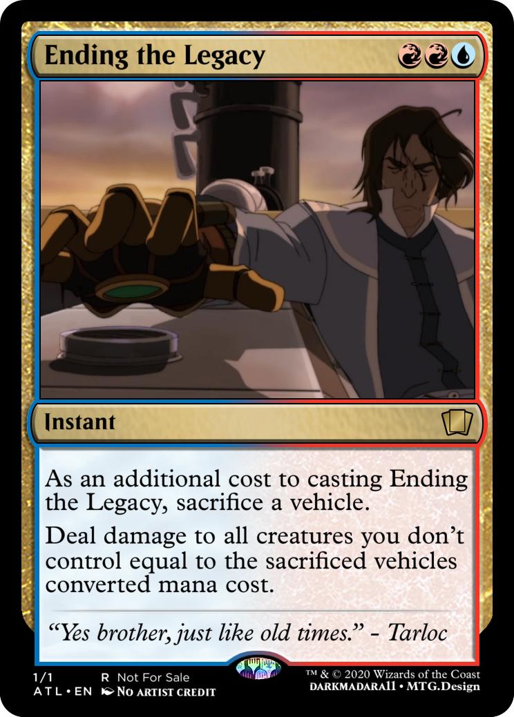 As an additional cost to casting Ending the Legacy, sacrifice a vehicle.
