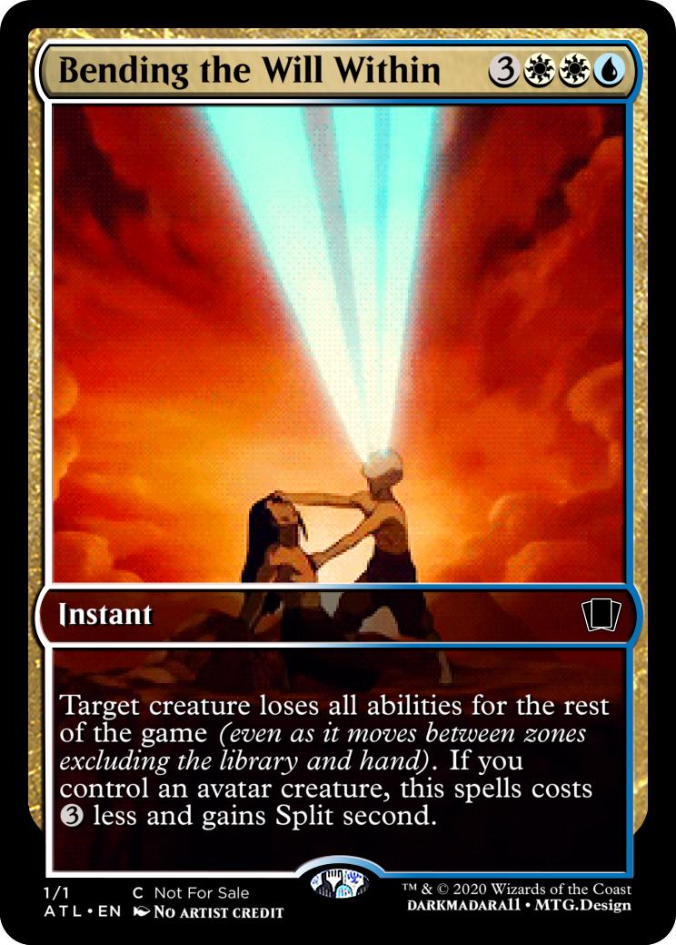 Whenever a creature you control is targeted by an opponents effect that would cause that creature to leave the battlefield, you may cast this spell for {0}. If you do, exile The Avatar State at the beginning of the next end step.