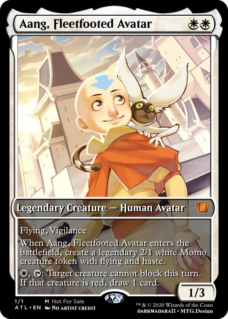 When Aang, Fleetfooted Avatar enters the battlefield, create a legendary 2/1 white Momo creature token with flying and haste.