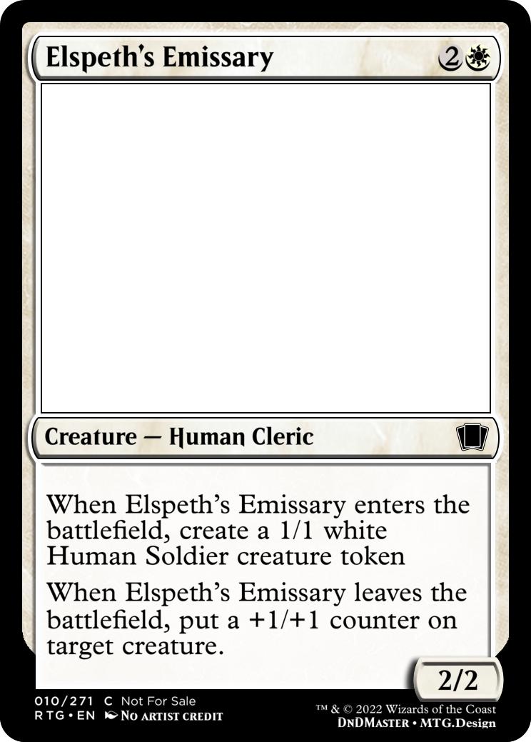 When Elspeth's Emissary enters the battlefield, create a 1/1 white Human Soldier creature token