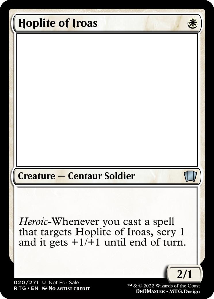Heroic-Whenever you cast a spell that targets Hoplite of Iroas, scry 1 and it gets +1/+1 until end of turn.