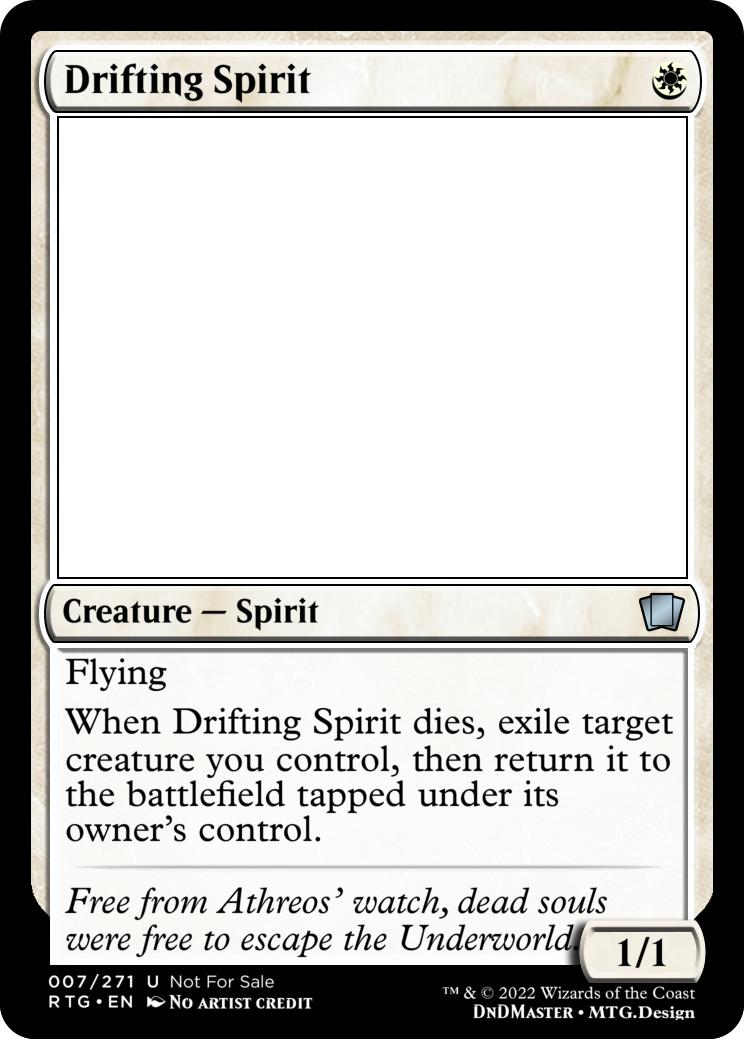 When Drifting Spirit dies, exile target creature you control, then return it to the battlefield tapped under its owner’s control.