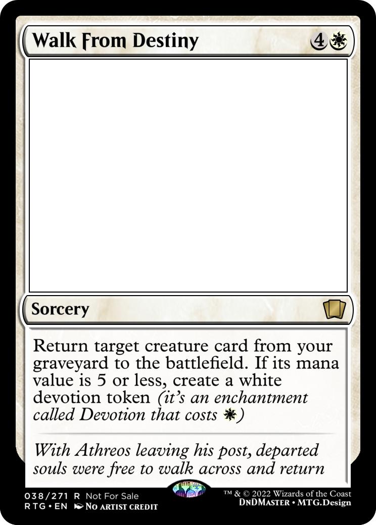 Return target creature card from your graveyard to your hand. Create a white devotion token (it’s an enchantment called Devotion that costs {w})