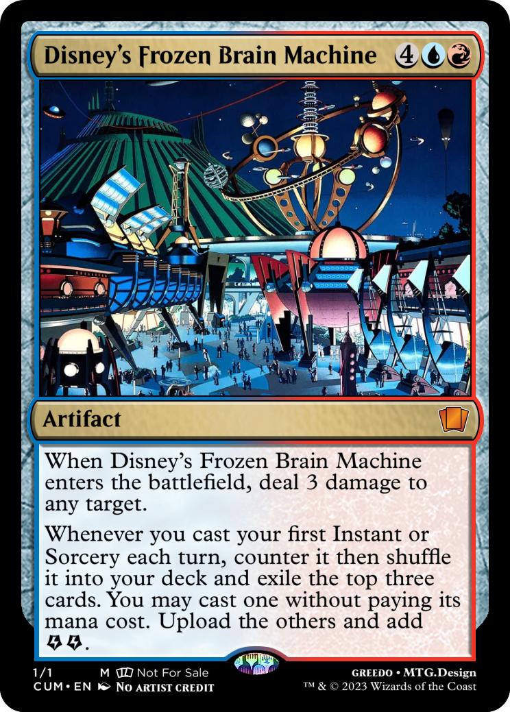 When Disney's Frozen Brain Machine enters the battlefield, deal 3 damage to any target.