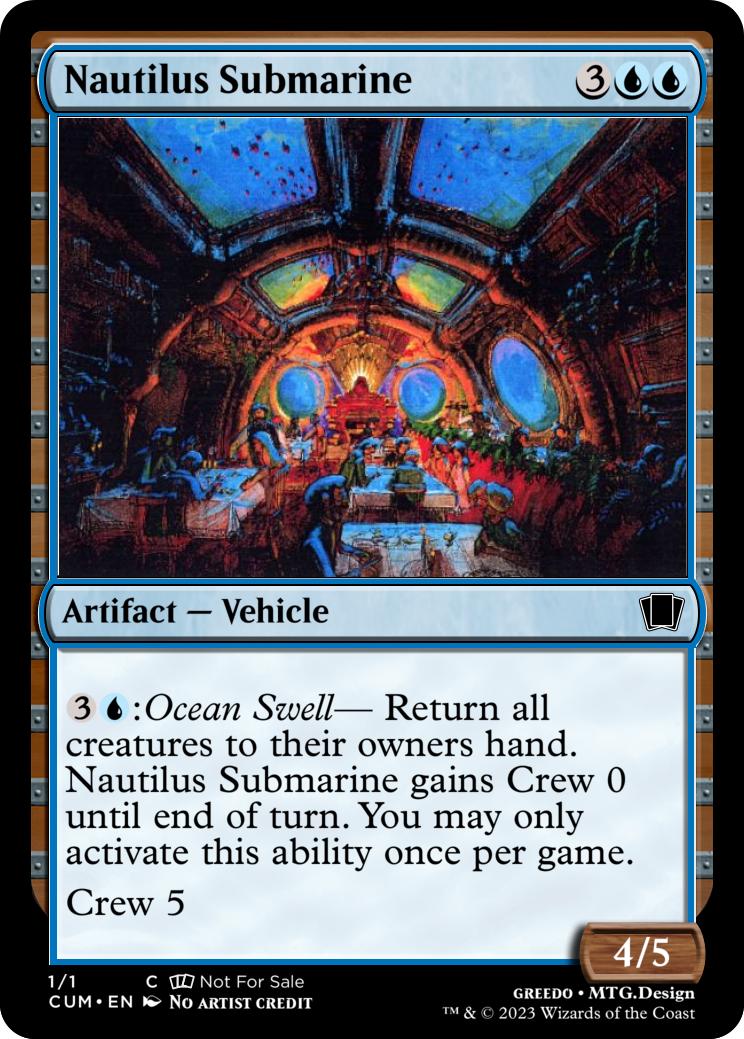 {3}{U}: Ocean Swell- Return all creatures to their owners hand. Nautilus Submarine gains Crew 0 until end of turn. You may only activate this ability once per game.
