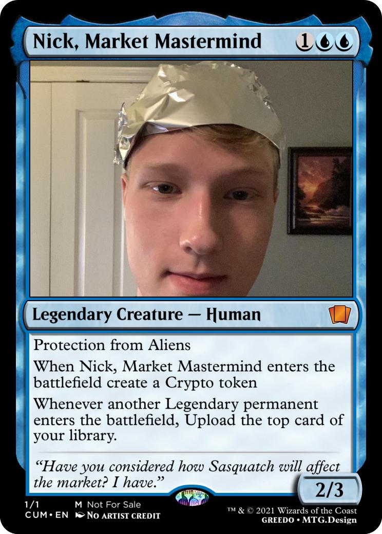 When Nick, Market Mastermind enters the battlefield create a Crypto token