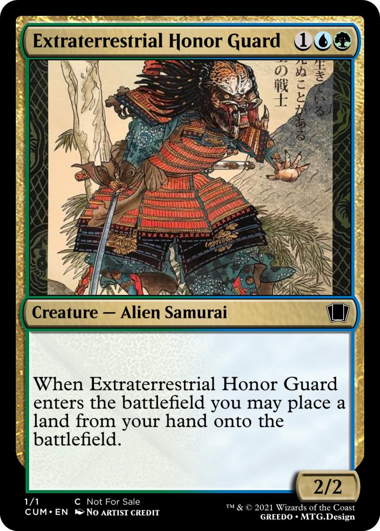 When Extraterrestrial Honor Guard enters the battlefield you may place a land from your hand onto the battlefield.