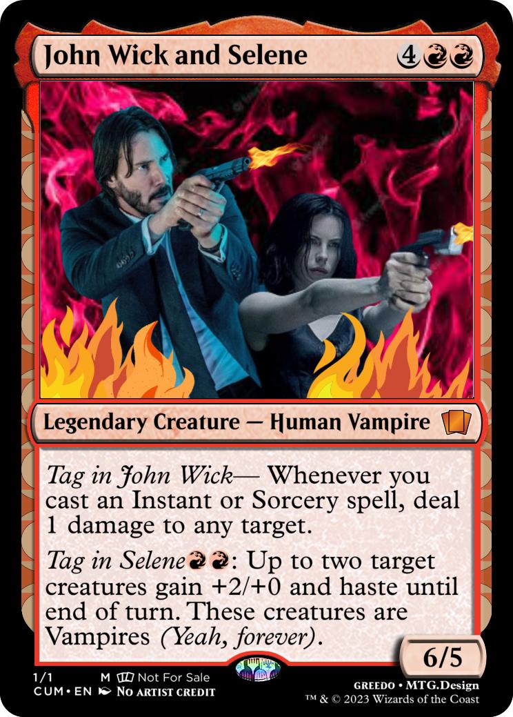 Tag in John Wick- Whenever you cast an Instant or Sorcery spell, deal 1 damage to any target.