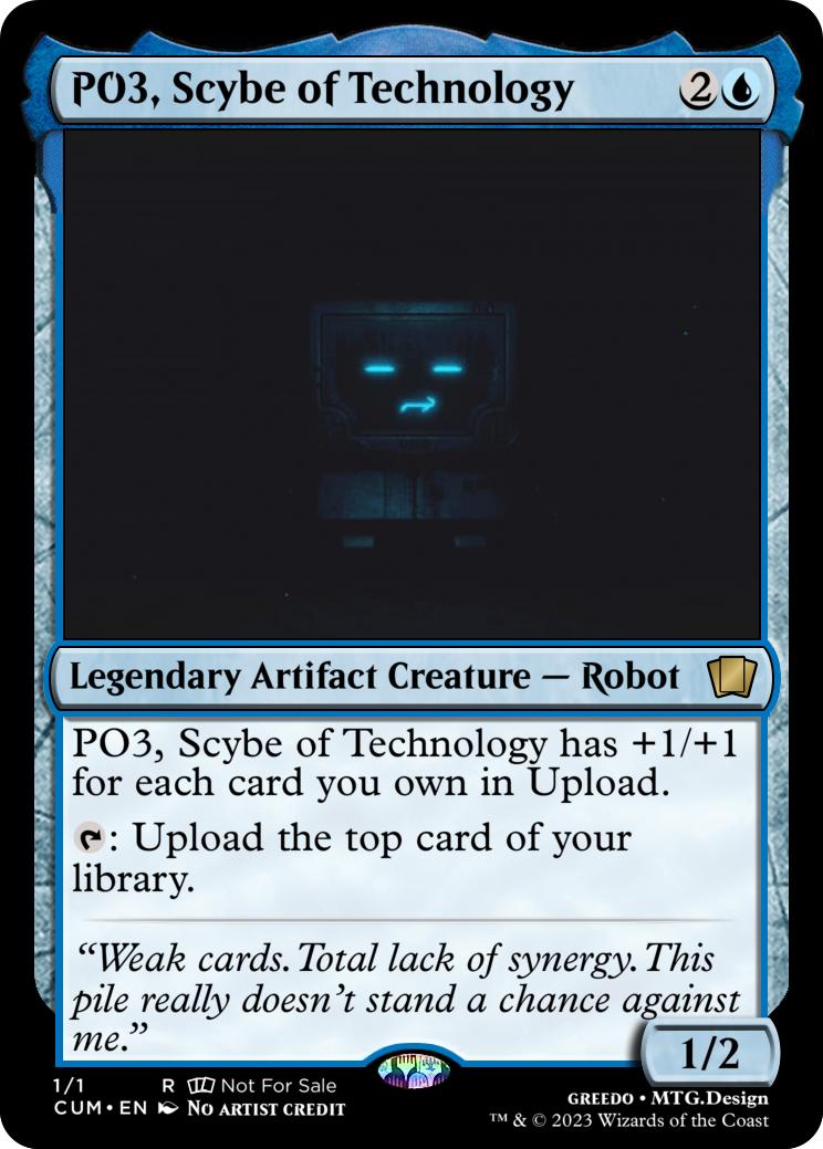 PO3, Scybe of Technology has +1/+1 for each card you own in Upload.