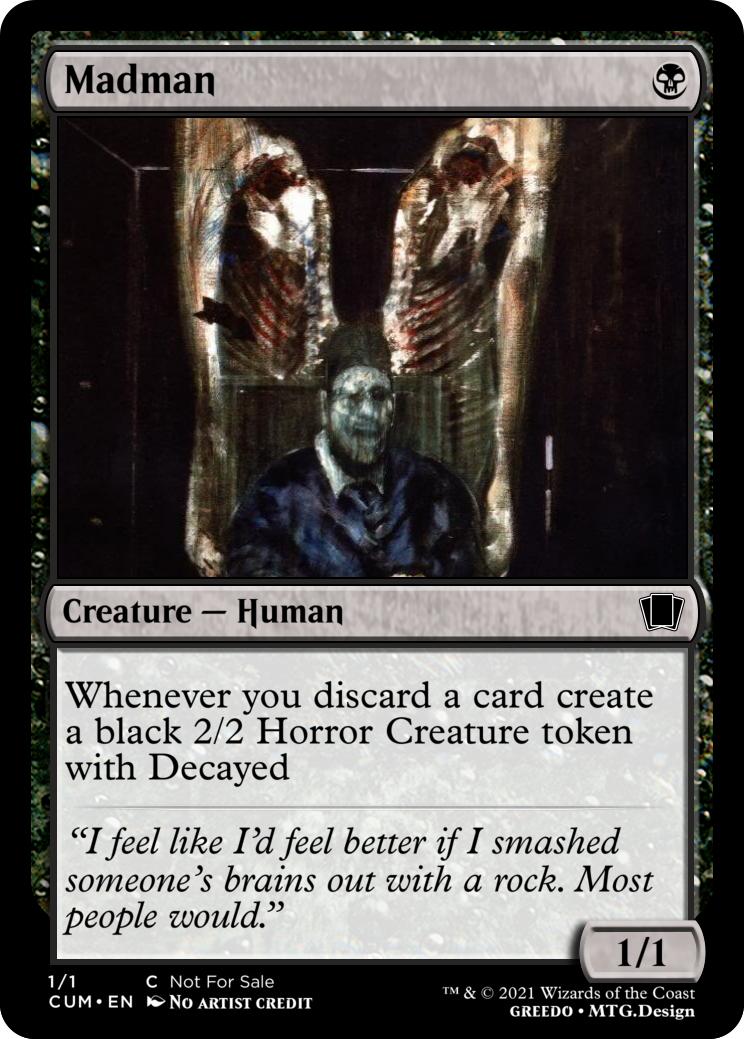 Whenever you discard a card create a black 2/2 Horror Creature token with Decayed
