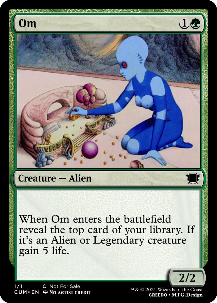 When Om enters the battlefield reveal the top card of your library. If it's an Alien or Legendary creature gain 5 life.