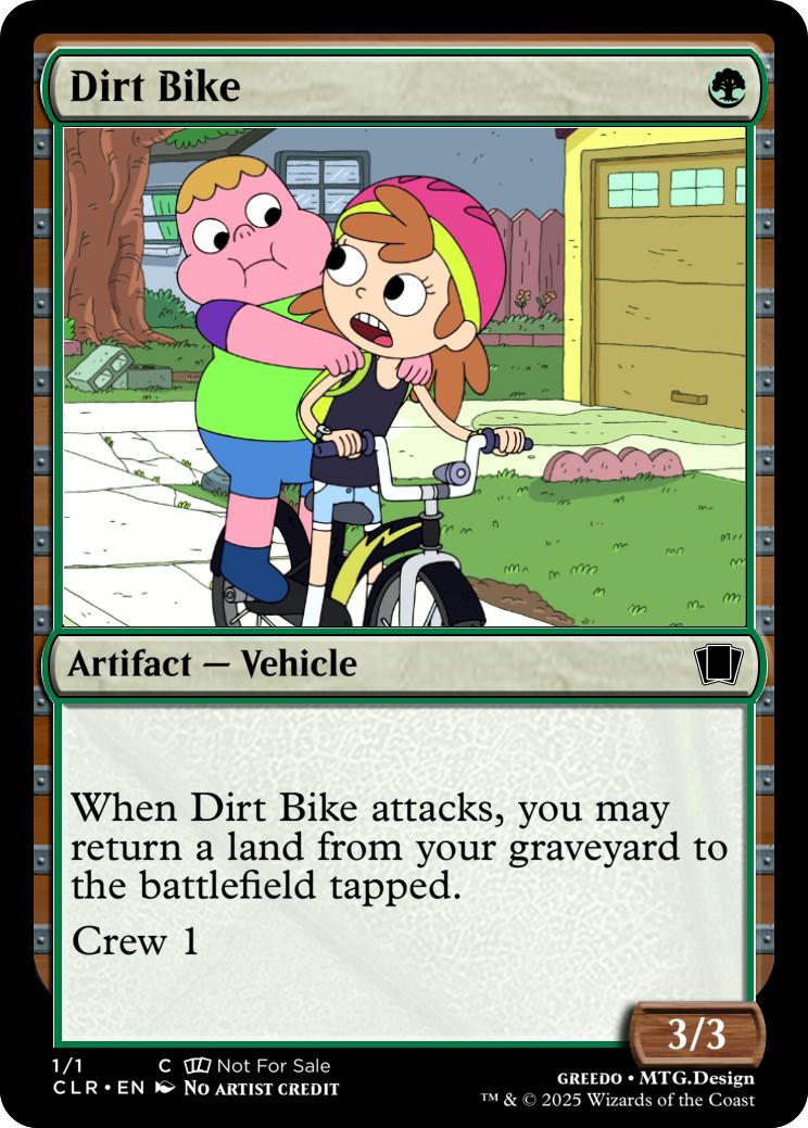 When Dirt Bike attacks, you may return a land from your graveyard to the battlefield tapped.