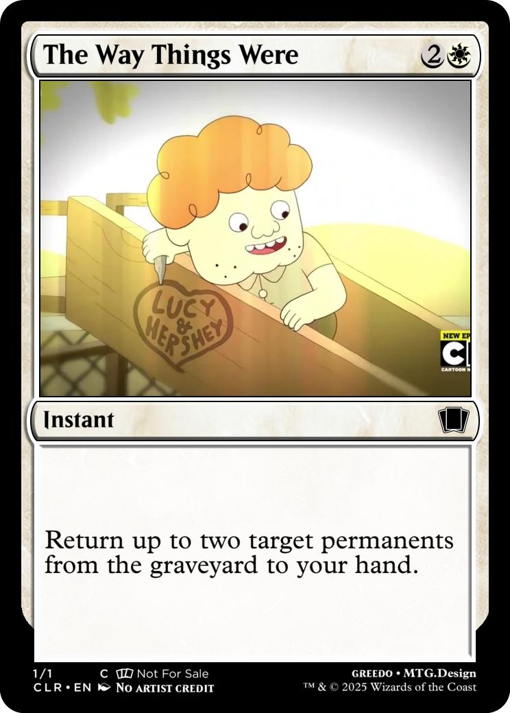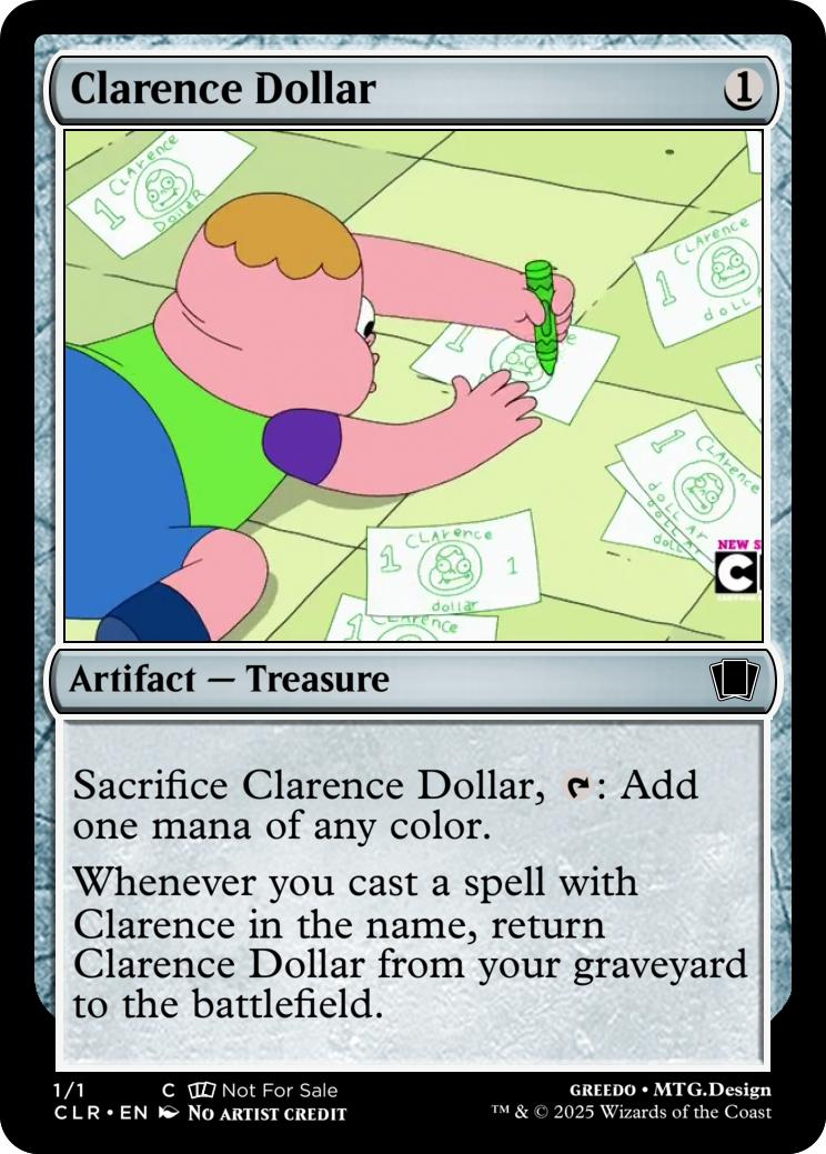 Whenever you cast a spell with Clarence in the name, return Clarence Dollar from your graveyard to the battlefield.