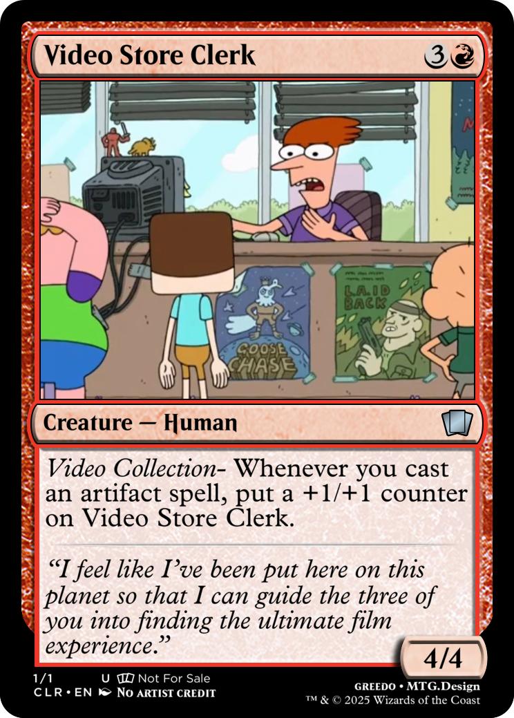 Video Collection- Whenever you cast an artifact spell, put a +1/+1 counter on Video Store Clerk.