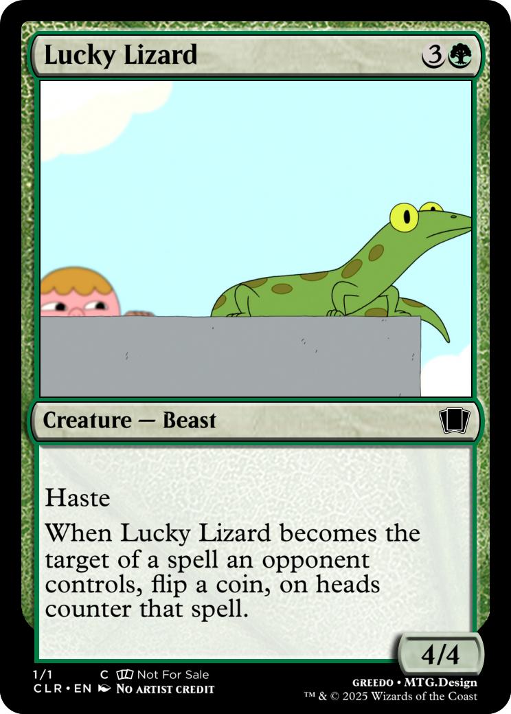 When Lucky Lizard becomes the target of a spell an opponent controls, flip a coin, on heads counter that spell.