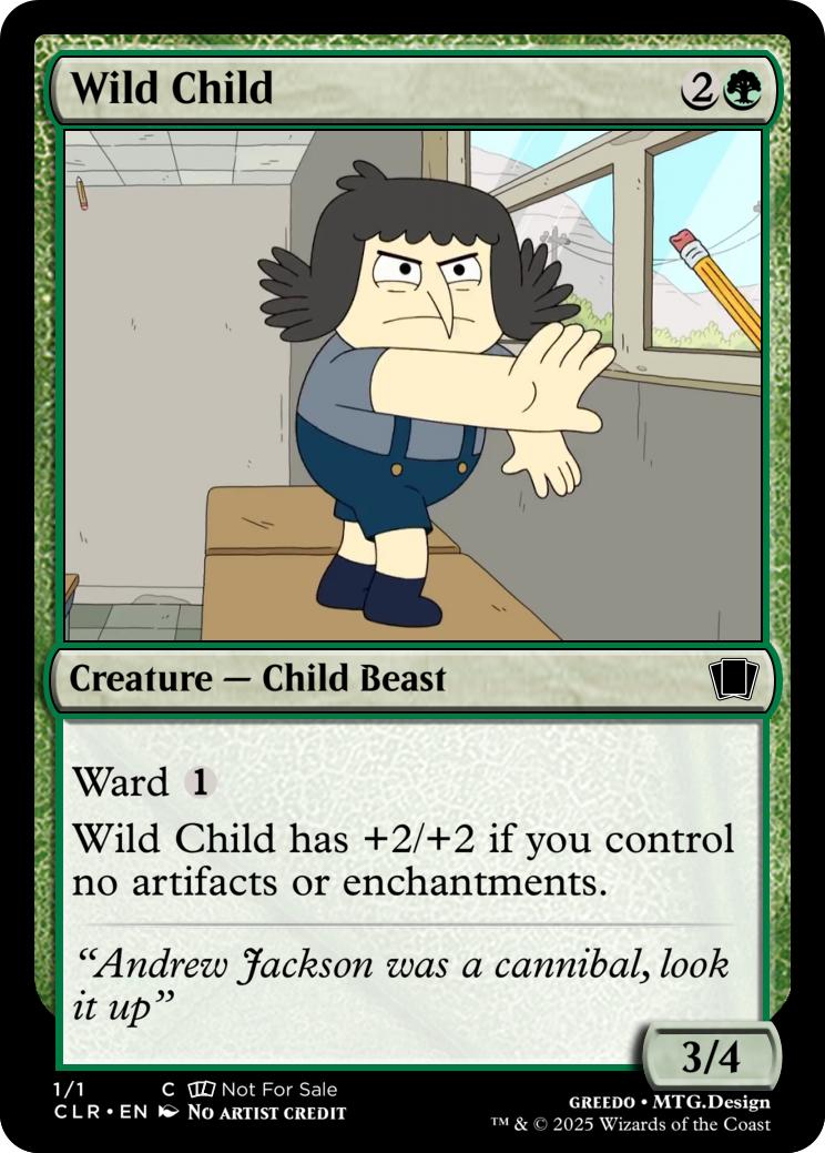 Wild Child has +2/+2 if you control no artifacts or enchantments.