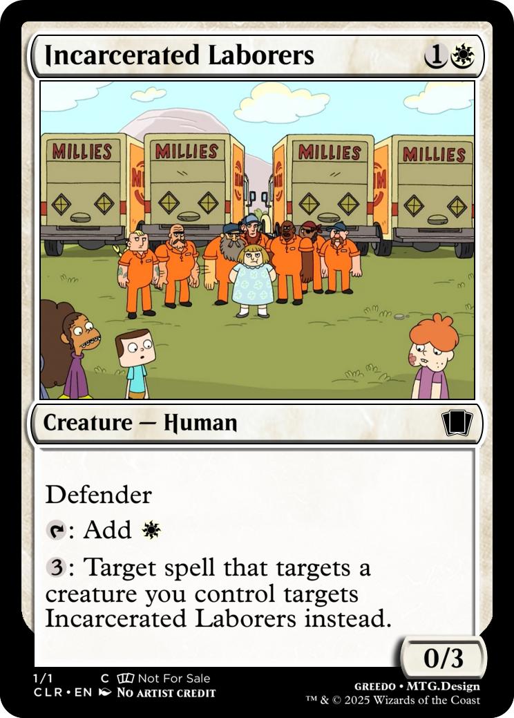 {3}: Target spell that targets a creature you control targets Incarcerated Laborers instead.