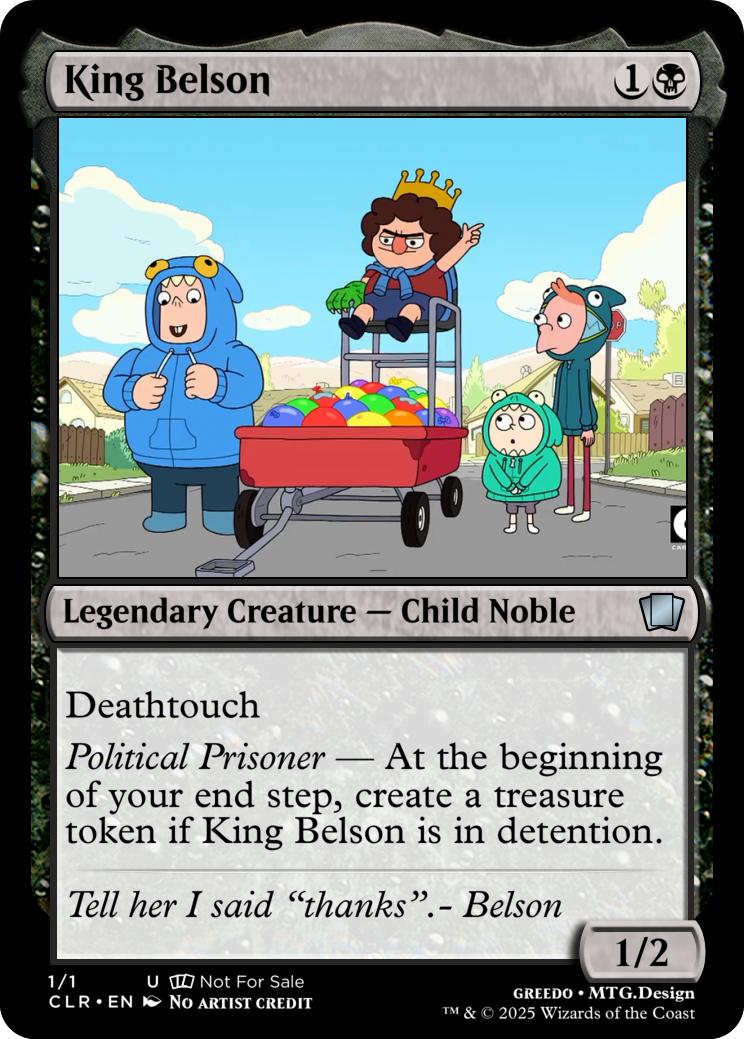 Political Prisoner - At the beginning of your end step, create a treasure token if King Belson is in detention.