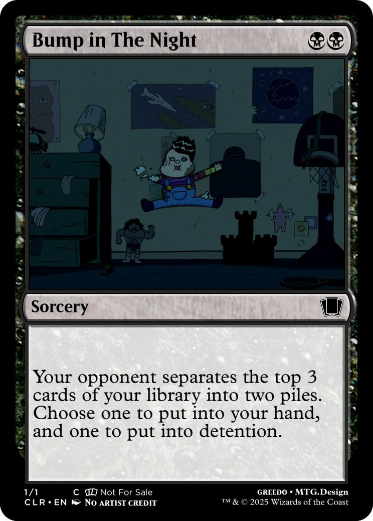 Your opponent separates the top 3 cards of your library into two piles. Choose one to put into your hand, and one to put into detention.