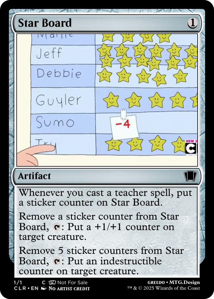 Whenever you cast a teacher spell, put a sticker counter on Star Board.