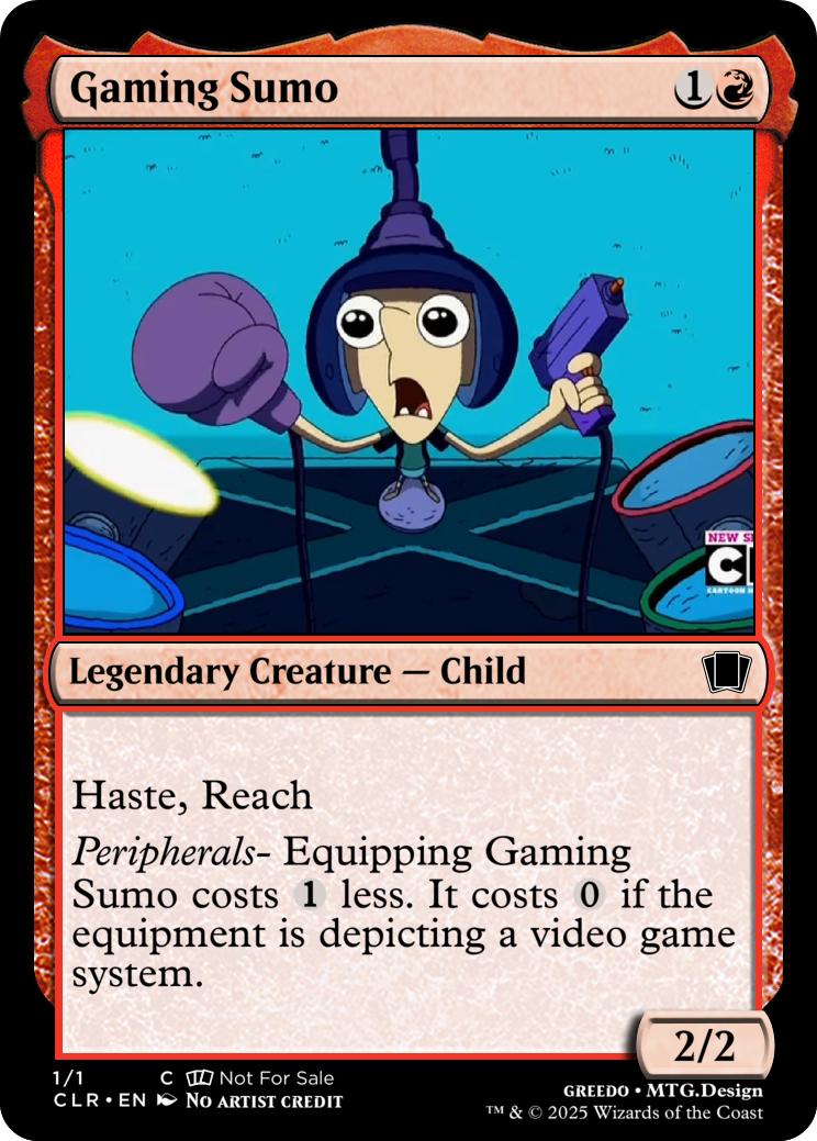 Peripherals- Equipping Gaming Sumo costs {1} less. It costs {0} if the equipment is depicting a video game system.