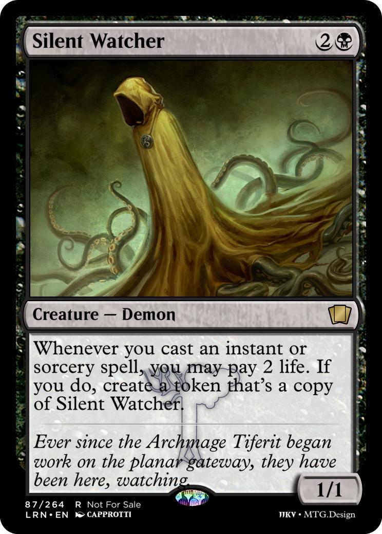 Whenever you cast an instant or sorcery spell, you may pay 2 life. If you do, create a token that's a copy of Silent Watcher.