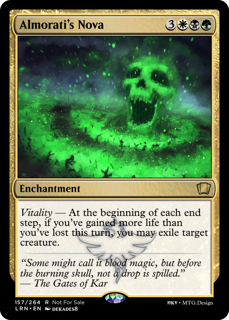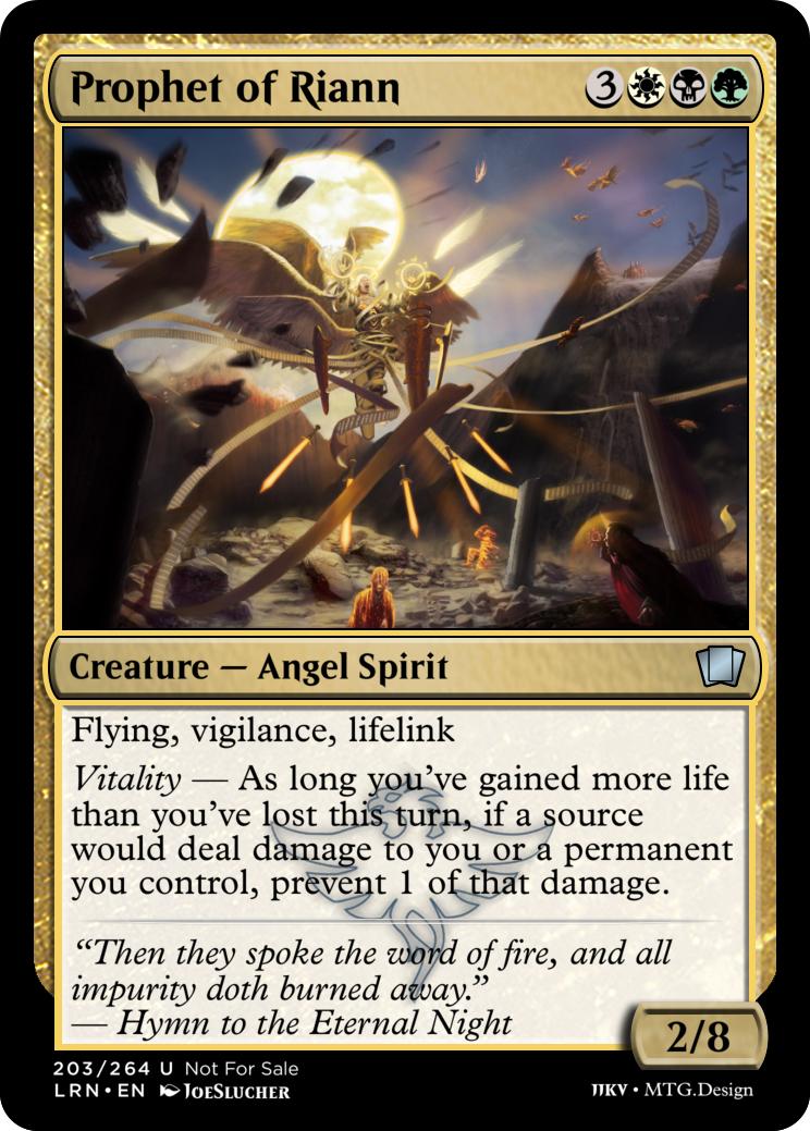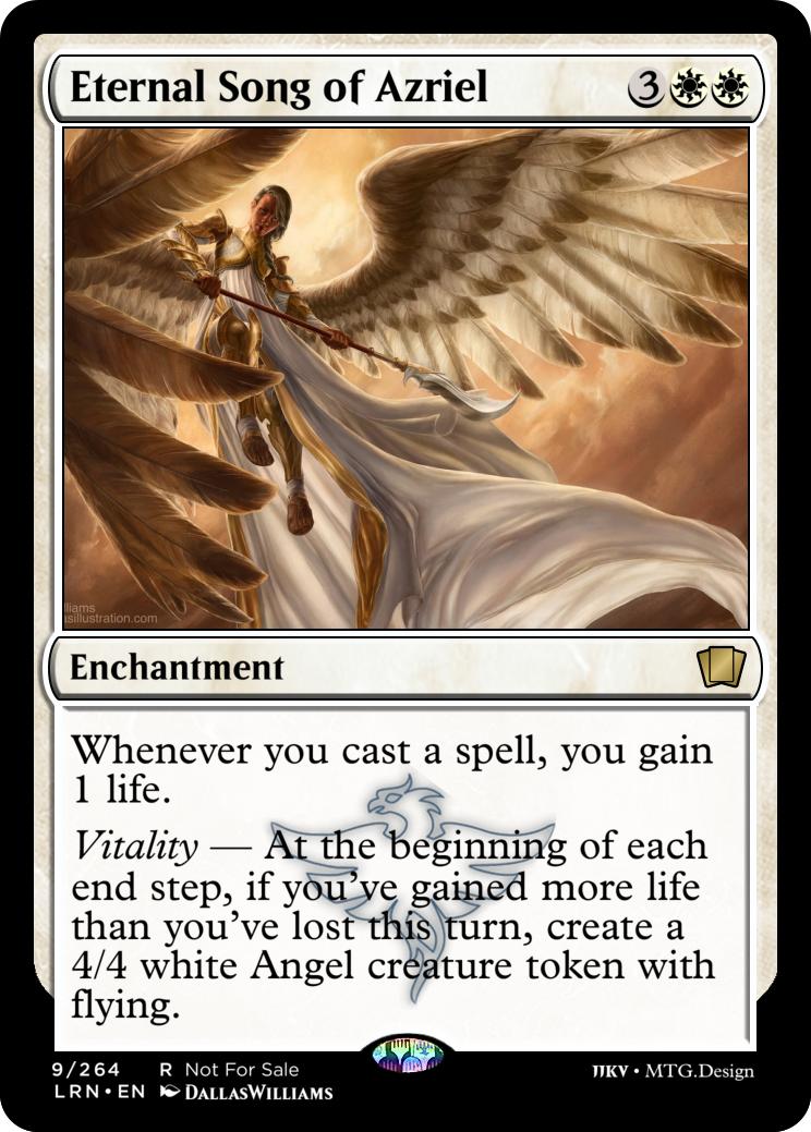 Vitality -- At the beginning of each end step, if you've gained more life than you've lost this turn, create a 4/4 white Angel creature token with flying.