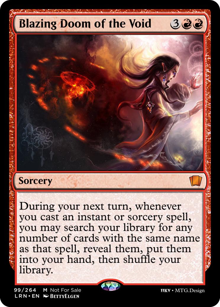 During your next turn, whenever you cast an instant or sorcery spell, you may search your library for any number of cards with the same name as that spell, reveal them, put them into your hand, then shuffle your library.