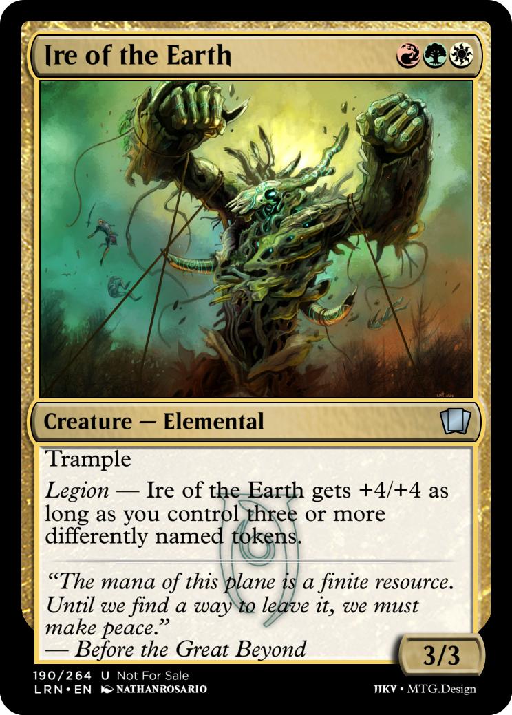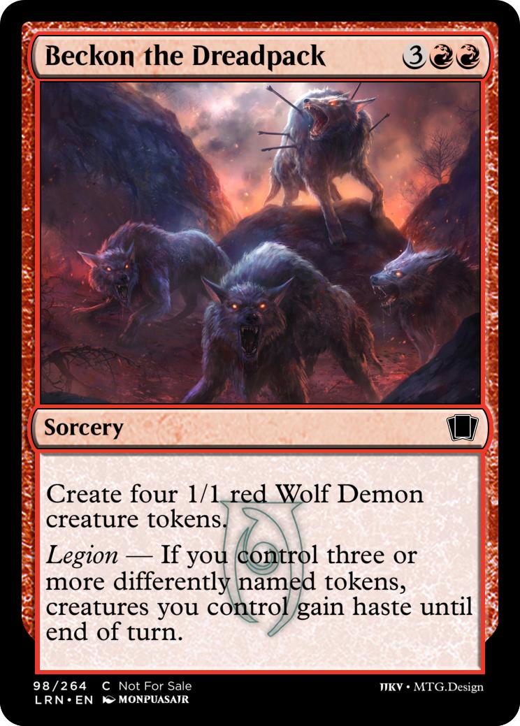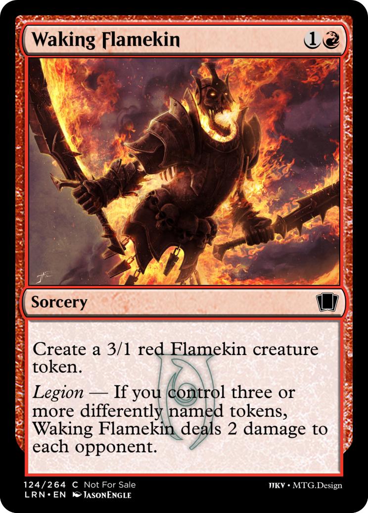Legion -- If you control three or more differently named tokens, instead sacrifice all tokens you control, then create that many 4/4 red Hellion creature tokens.
