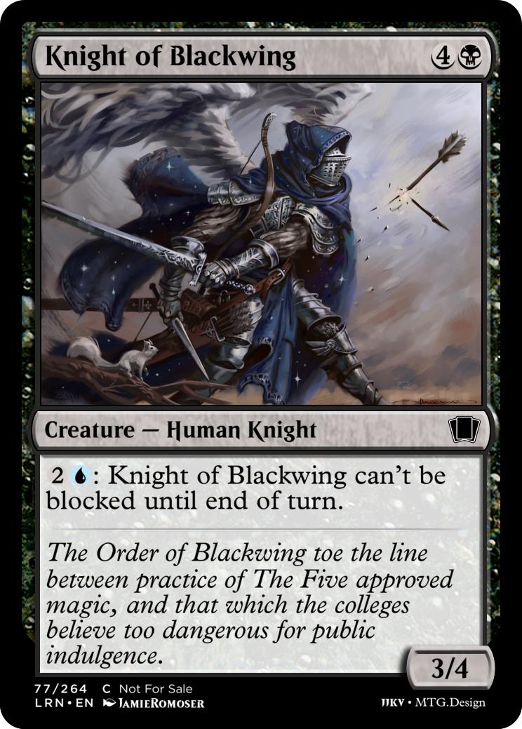{2}{U}: Knight of Blackwing can't be blocked until end of turn.