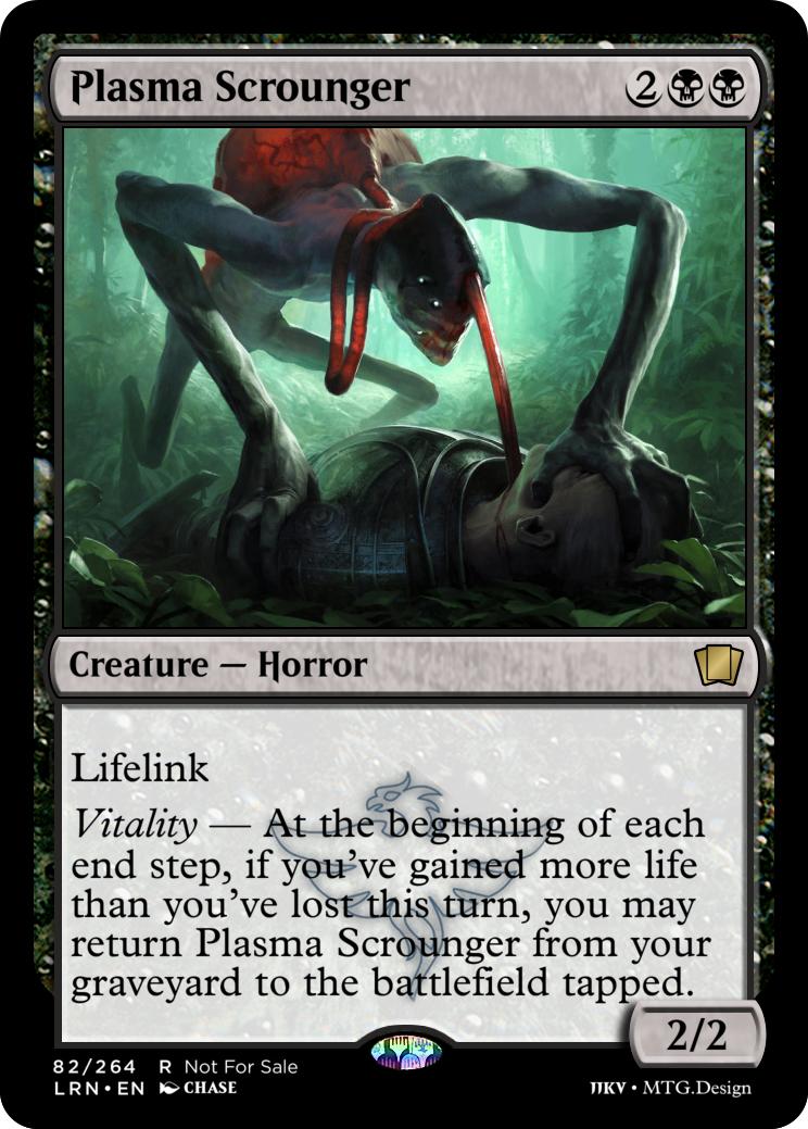 Vitality - At the beginning of each end step, if you've gained more life than you've lost this turn, you may return Plasma Scrounger from your graveyard to the battlefield tapped.