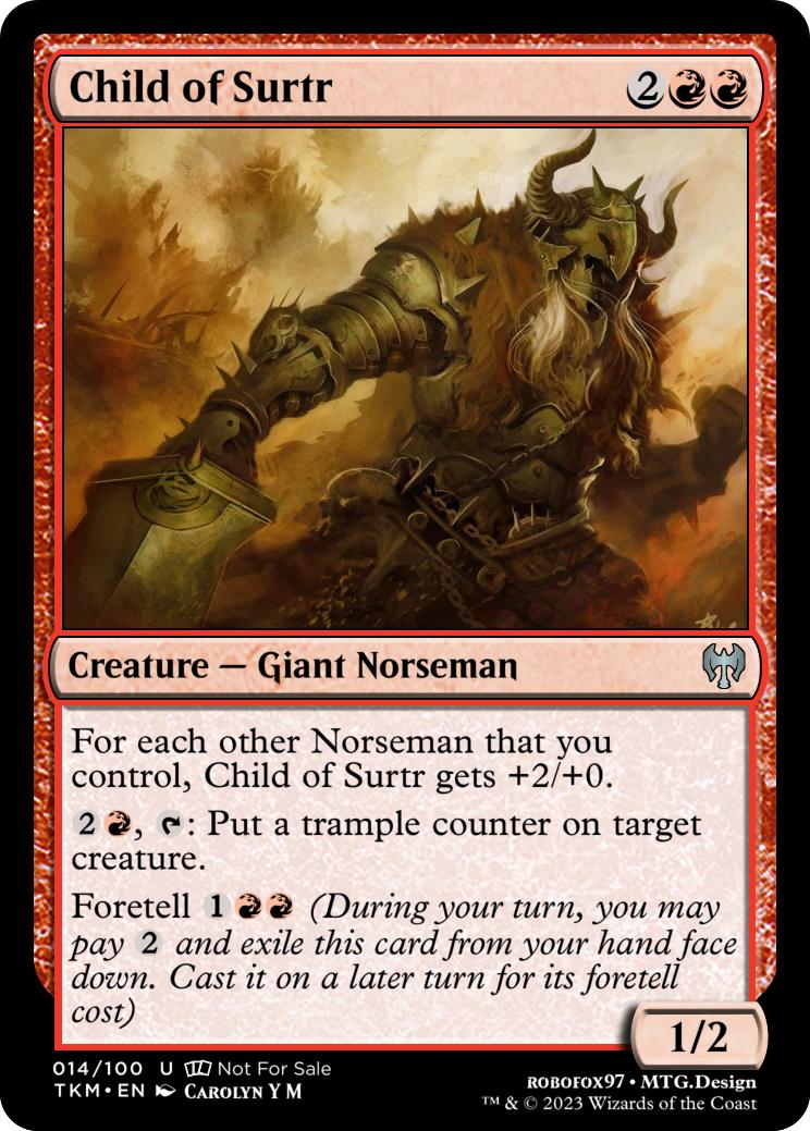 For each other Norseman that you control, Child of Surtr gets +2/+0.