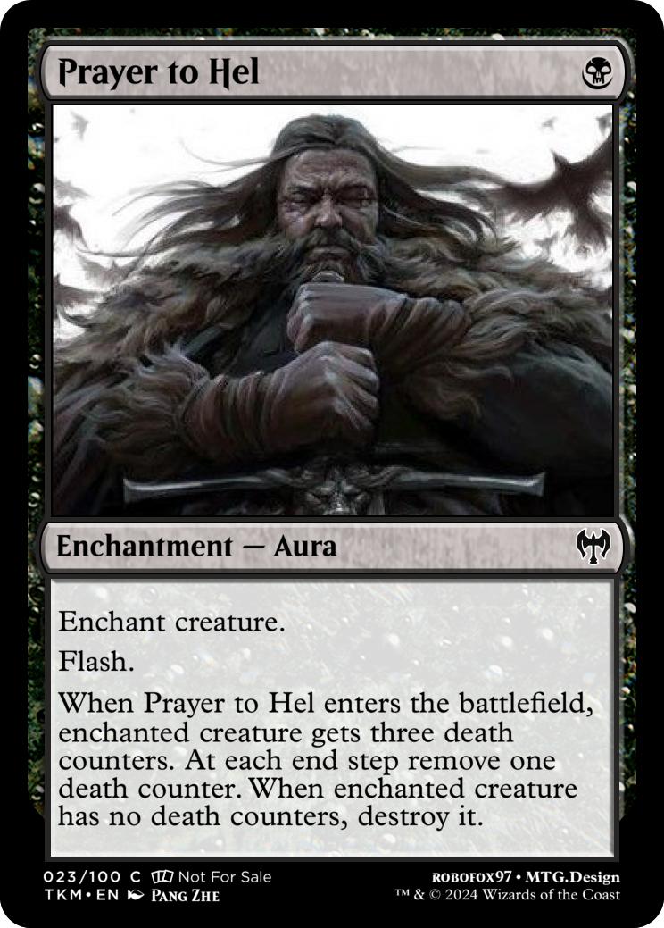 When Prayer to Hel enters the battlefield, enchanted creature gets three death counters. At each end step remove one death counter. When enchanted creature has no death counters, destroy it.