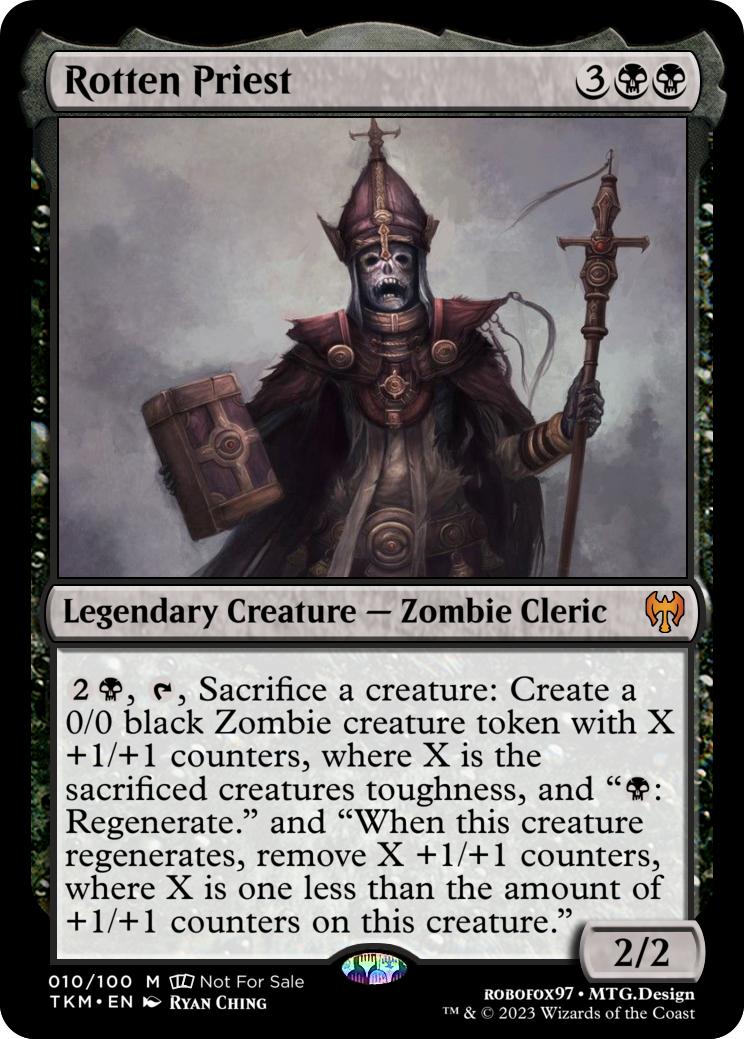 {2}{b}, {t}, Sacrifice a creature: Create a 0/0 black Zombie creature token with X +1/+1 counters, where X is the sacrificed creatures toughness, and "{b}: Regenerate." and "When this creature regenerates, remove X +1/+1 counters, where X is one less than the amount of +1/+1 counters on this creature."