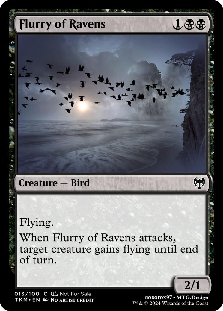 When Flurry of Ravens attacks, target creature gains flying until end of turn.