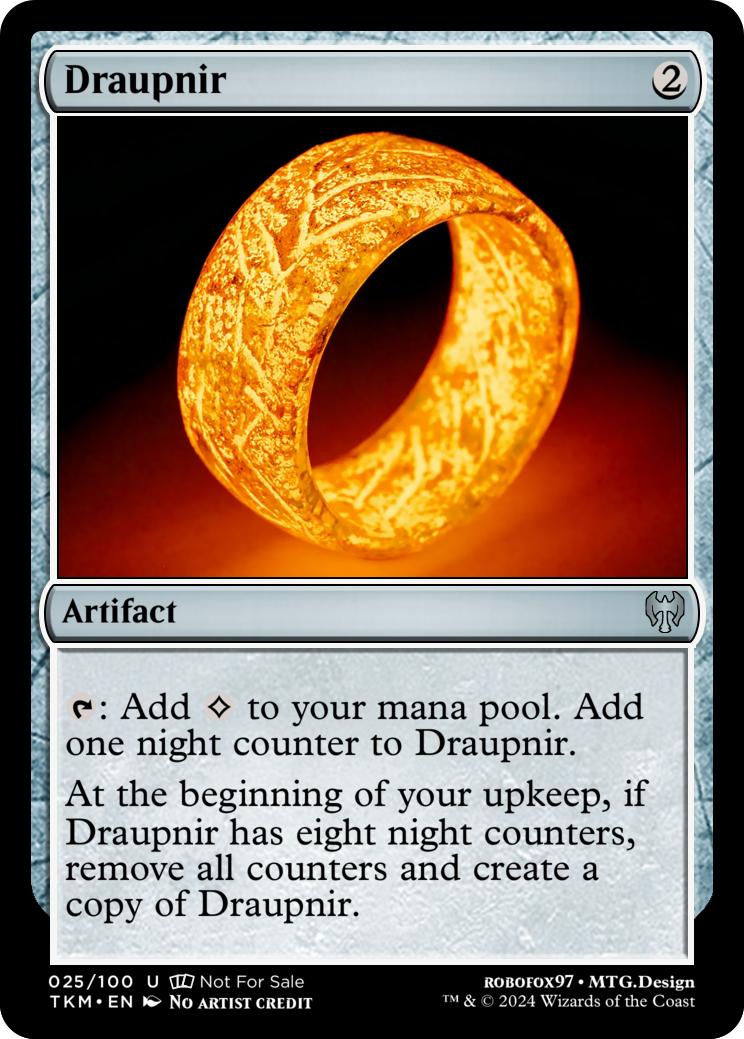At the beginning of your upkeep, if Draupnir has eight night counters, remove all counters and create a copy of Draupnir.