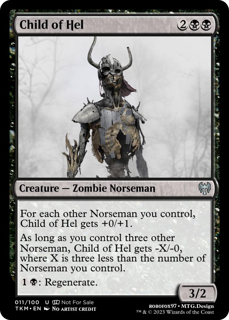 For each other Norseman you control, Child of Hel gets +0/+1.