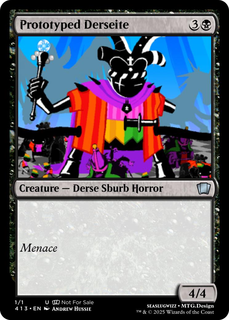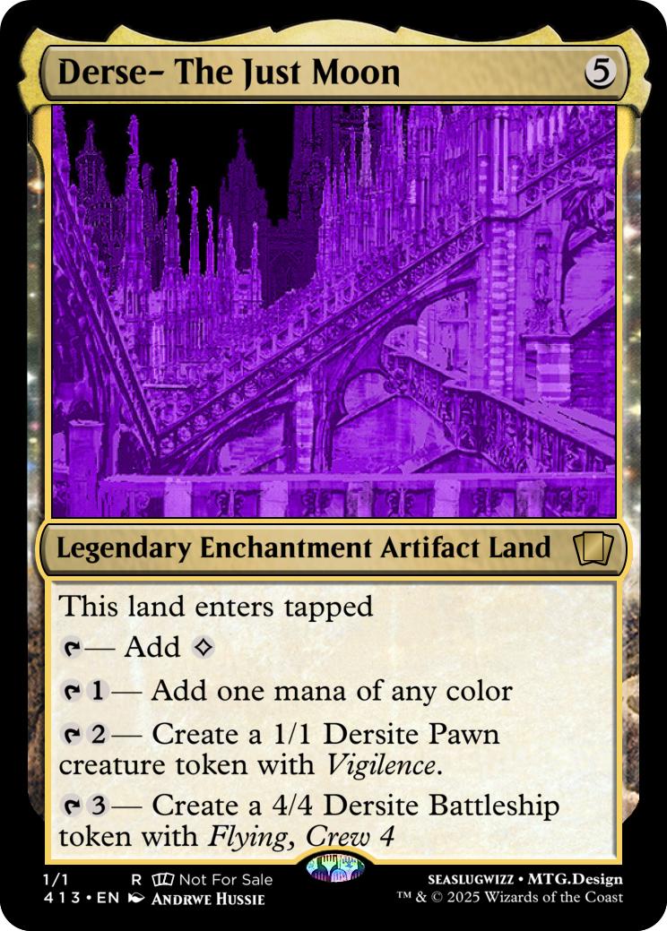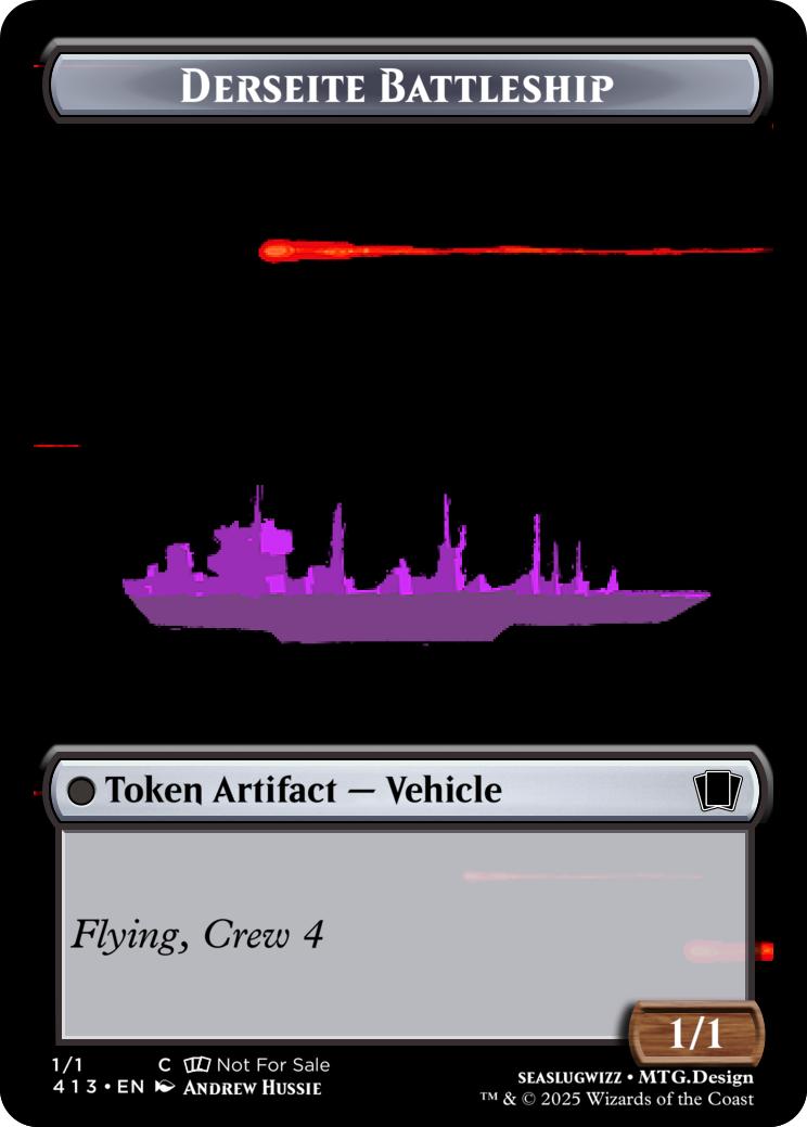 {T}{3}- Create a 4/4 Dersite Battleship token with Flying, Crew 4